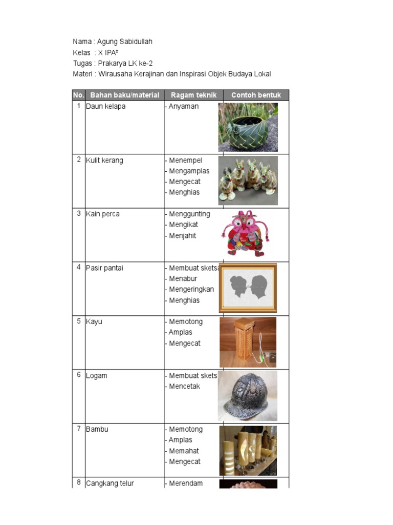 Kaleng bekas ragam teknik dan contoh gambar : Tugas individu 02 identikasi ragam material dan teknik produksi di lingkungan sekitar silahkan brainly co id. Admin dari blog bagikan contoh 2019 juga mengumpulkan gambar gambar lainnya terkait contoh identifikasi ragam material dan teknik produksi di lingkungan sekitar beserta gambarnya dibawah ini. Presentasikan dalam bentuk tabel lk 3 atau bentuk presentasi lain yang lebih menarikdan kreatif. Ni kadek asri rahayu ( 06 ) 2.
